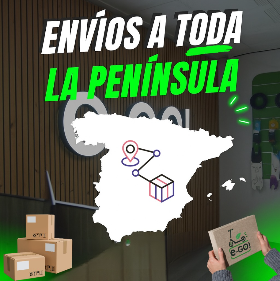 No tienes que preocuparte por nada. En E-go! nos encargamos de que tu experiencia sea fácil y cómoda desde el primer click. Enviamos tu patinete eléctrico o accesorios a cualquier punto de España, con un servicio rápido, seguro y totalmente garantizado. Nuestro equipo prepara cada pedido con el máximo cuidado para que llegue en perfectas condiciones, listo para usar desde el primer día.